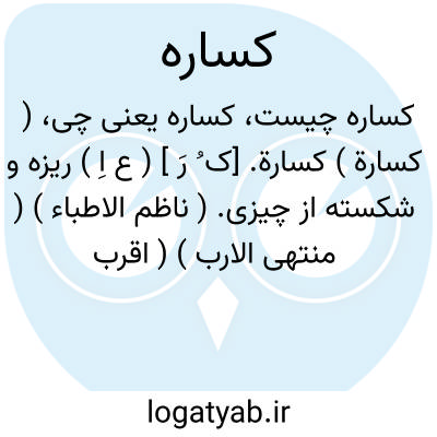 ( کسارة ) کسارة. [ک ُ رَ ] ( ع اِ ) ریزه و شکسته از چیزی. ( ناظم الاطباء ) ( منتهی الارب ) ( اقرب الموارد ). رجوع به کسار شود.