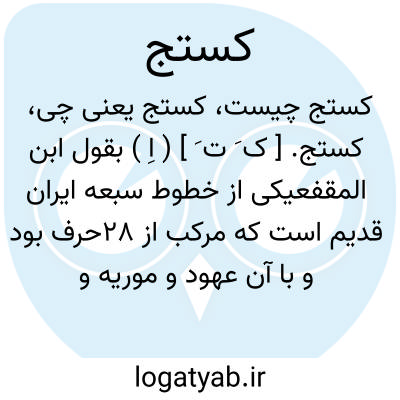 کستج. [ ک َ ت َ ] ( اِ ) بقول ابن المقفعیکی از خطوط سبعه ایران قدیم است که مرکب از 28حرف بود و با آن عهود و موریه و قطائع را می نوشتند و نقوش نگین ها و طراز جامه ها و فرشها و سکه دنانیر و درهم آنان نیز بدین خط بوده است. ( الفهرست چ مصر ص 20 ).گشتک. ( یادداشت مؤلف ). رجوع به گشته و گشتک شود.