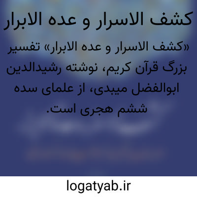 [ویکی نور] کشف الاسرار و عده الابرار (معروف به تفسیر خواجه عبدالله انصاری). کشف الأسرار و عدة الأبرار، تألیف ابوالفضل، رشیدالدین میبدی بر اساس تفسیر خواجه عبدالله انصاری، منبعی غنی از تفسیر، تأویل، معارف اسلامی، شعر و ادب عربی و فارسی است. در بین ترجمه ها و تفسیرهای معتبر قرآن به زبان فارسی، «کشف الأسرار» ارزشی والا و مقامی خاص دارد.