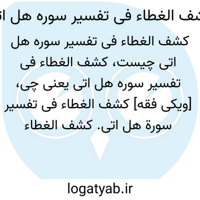 [ویکی فقه] کشف الغطاء فی تفسیر سورة هل اتی اثـر سیدرجبعلی خان بهادر حسنی حسینی نقوی بهکری دهلوی لاهوری (م ۱۲۸۶ ق)، از متکلمین شیعه در هندوستان می باشد.
