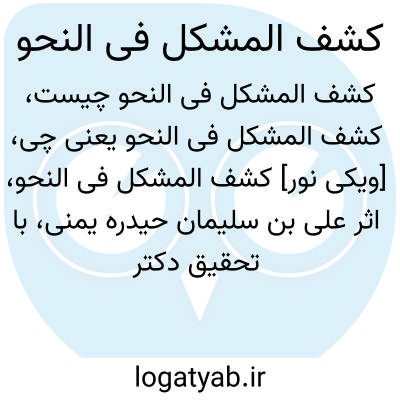 [ویکی نور] کشف المشکل فی النحو، اثر علی بن سلیمان حیدره یمنی، با تحقیق دکتر هادی عطیه مطر، کتابی است در علوم مختلف نحو که به زبان عربی و در قرن ششم هجری نوشته شده است.