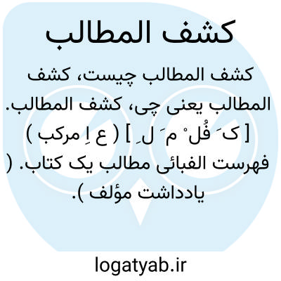 کشف المطالب. [ ک َ فُل ْ م َ ل ِ ] ( ع اِ مرکب ) فهرست الفبائی مطالب یک کتاب. ( یادداشت مؤلف ). مانند کشف المطالب قرآن کریم.