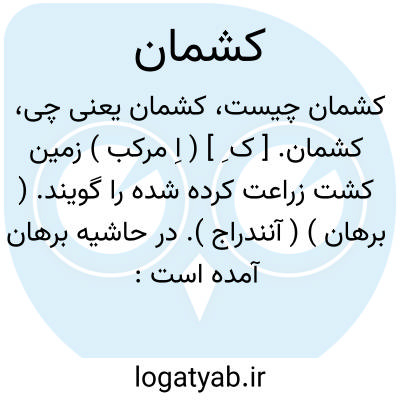 کشمان. [ ک ِ ] ( اِ مرکب ) زمین کشت زراعت کرده شده را گویند. ( برهان ) ( آنندراج ). در حاشیه برهان آمده است: این کلمه مخفف کشتمان است مرکب از کشت ( کاشتن ) + مان ( پسوند اتصاف ) کشتمند: