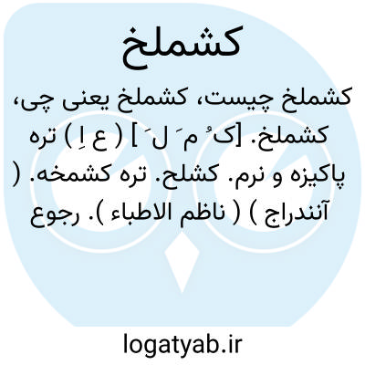 لغت نامه دهخدا کشملخ. [ک ُ م َ ل َ ] ( ع اِ ) تره پاکیزه و نرم. کشلح. تره کشمخه. ( آنندراج ) ( ناظم الاطباء ). رجوع به کشمخه شود.