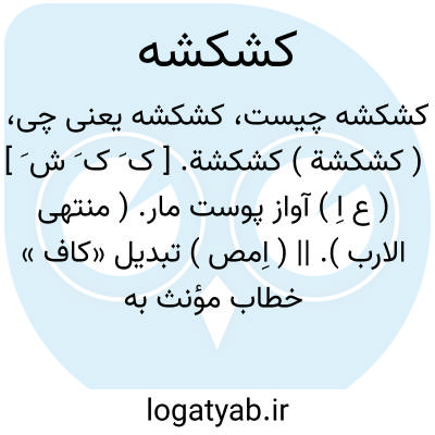 ( کشکشة ) کشکشة. [ ک َ ک َ ش َ ] ( ع اِ ) آواز پوست مار. ( منتهی الارب ). || ( اِمص ) تبدیل «کاف » خطاب مؤنث به لغت «بنی اسد» یا «ربیعه « »به شین » چون «علیش » در«علیک » و «بش » در «بک ». ( از منتهی الارب ). || افزودن «شین » به آخر کاف خطاب مؤنث به لغت بنی اسد یا ربیعه چون «اکرمتکش ». ( از منتهی الارب ). رجوع به شرح انموذج شود. || ( مص ) از پوست بانگ برآوردن ازده و گریختن. ( از منتهی الارب ). همه آب چاه و جز آن کشیدن: یقال بحر لایکشکش؛ ای لاینزح ماؤه بالاستقاء. ( منتهی الارب ).