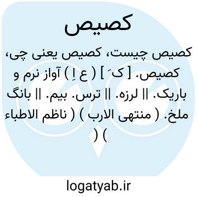 کصیص. [ ک َ ] ( ع اِ ) آواز نرم و باریک. || لرزه. || ترس. بیم. || بانگ ملخ. ( منتهی الارب ) ( ناظم الاطباء ) ( از اقرب الموارد ).