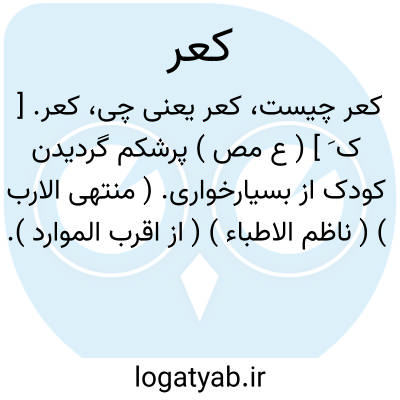 کعر. [ ک َ ] ( ع مص ) پرشکم گردیدن کودک از بسیارخواری. ( منتهی الارب ) ( ناظم الاطباء ) ( از اقرب الموارد ).