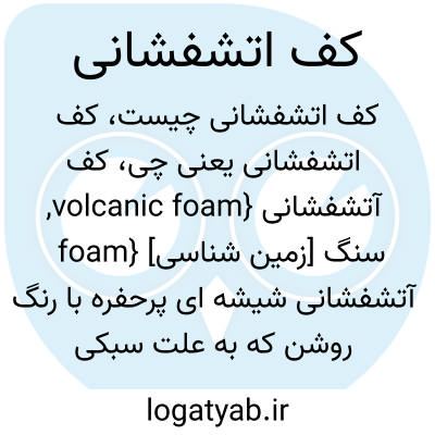 {volcanic foam, foam} [زمین شناسی] سنگ آتشفشانی شیشه ای پرحفره با رنگ روشن که به علت سبکی در سطح آب شناور می شود متـ. پوکه pumice, pumicite, pumice stone