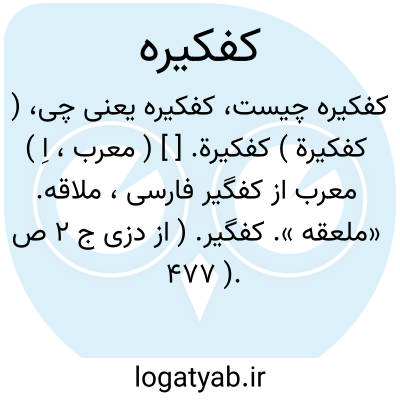 ( کفکیرة ) کفکیرة. [ ] ( معرب، اِ ) معرب از کفگیر فارسی، ملاقه. «ملعقه ». کفگیر. ( از دزی ج 2 ص 477 ).