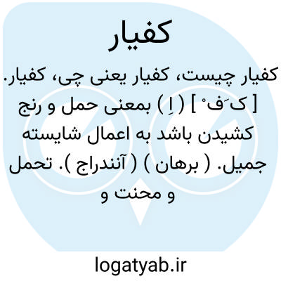 کفیار. [ ک َف ْ ] ( اِ ) بمعنی حمل و رنج کشیدن باشد به اعمال شایسته جمیل. ( برهان ) ( آنندراج ). تحمل و محنت و رنج در کارهای نیک و شایسته. ( ناظم الاطباء ).