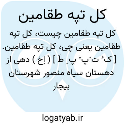 لغت نامه دهخدا کل تپه طقامین. [ ک ُ ت َپ ْ پ ِ طَ ] ( اِخ ) دهی از دهستان سیاه منصور شهرستان بیجار است و 600 تن سکنه دارد. ( از فرهنگ جغرافیایی ایران ج 5 ).