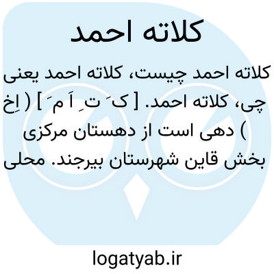 کلاته احمد. [ ک َ ت ِ اَ م َ ] ( اِخ ) دهی است از دهستان دوغائی بخش حومه شهرستان قوچان. محلی کوهستانی است و 193 تن سکنه دارد. آب آنجا از چشمه و قنات و محصول آن غلات و شغل مردم زراعت است. ( از فرهنگ جغرافیایی ایران ج 9 ).