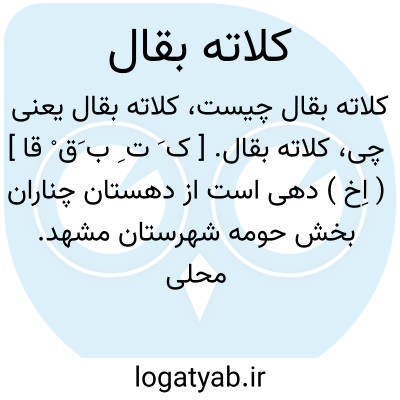کلاته بقال. [ ک َ ت ِ ب َق ْ قا ] ( اِخ ) دهی است از دهستان چناران بخش حومه شهرستان مشهد. محلی جلگه و معتدل است. ( از فرهنگ جغرافیایی ایران ج 9 ).