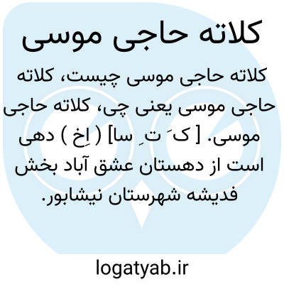 کلاته حاجی موسی. [ ک َ ت ِ سا] ( اِخ ) دهی است از دهستان عشق آباد بخش فدیشه شهرستان نیشابور. محلی جلگه ای و معتدل است با سکنه 139 تن، آب آنجا از قنات، محصول آن غلات، و شغل مردم زراعت و کرباس بافی است. ( از فرهنگ جغرافیایی ایران ج 9 ).