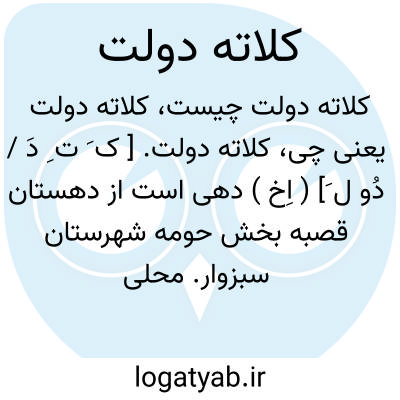کلاته دولت. [ ک َ ت ِ دَ / دُو ل َ] ( اِخ ) دهی است از دهستان قصبه بخش حومه شهرستان سبزوار. محلی جلگه ای ومعتدل است و سکنه 104 تن آب آنجا از قنات، محصول، غلات، پنبه، زیره و شغل مردم زراعت است و راه مالرو ( از فرهنگ جغرافیایی ایران ج 9 ).