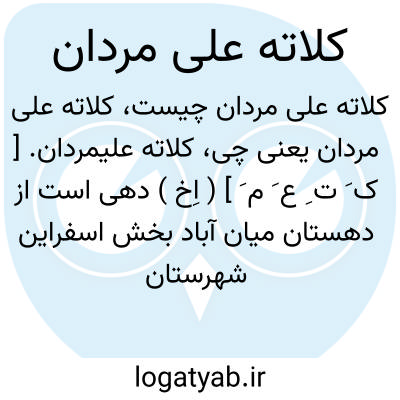 کلاته علیمردان. [ ک َ ت ِ ع َ م َ ] ( اِخ ) دهی است از دهستان میان آباد بخش اسفراین شهرستان بجنورد. محلی جلگه ای و گرم سیر است. ( از فرهنگ جغرافیایی ایران ج 9 ).