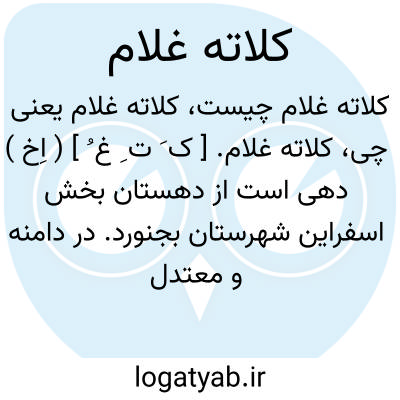 لغت نامه دهخدا کلاته غلام. [ ک َ ت ِ غ ُ ] ( اِخ ) دهی است از دهستان بخش اسفراین شهرستان بجنورد. در دامنه و معتدل است. ( از فرهنگ جغرافیایی ایران ج 9 ).