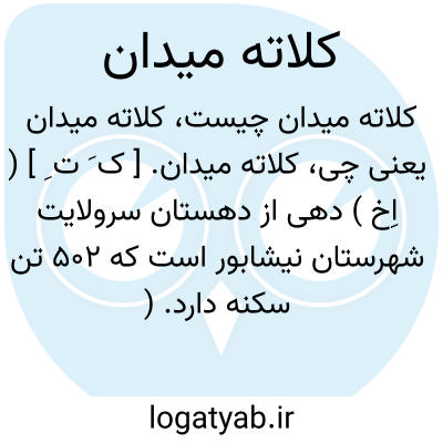 کلاته میدان. [ ک َ ت ِ ] ( اِخ ) دهی از دهستان سرولایت شهرستان نیشابور است که 502 تن سکنه دارد. ( از فرهنگ جغرافیایی ایران ج 9 ).
