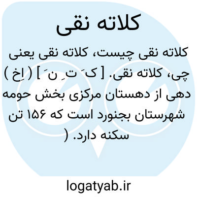کلاته نقی. [ ک َ ت ِ ن َ ] ( اِخ ) دهی از دهستان مرکزی بخش حومه شهرستان بجنورد است که 156 تن سکنه دارد. ( از فرهنگ جغرافیایی ایران ج 9 ).