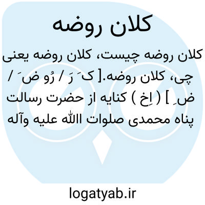 کلان روضه.[ ک َ رَ / رُو ض َ / ض ِ ] ( اِخ ) کنایه از حضرت رسالت پناه محمدی صلوات اﷲ علیه وآله است. ( برهان ). از القاب آن حضرت صلی اﷲ علیه و آله است. ( ناظم الاطباء ).