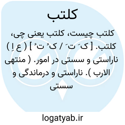 کلتب. [ ک َ ت َ / ک ُ ت ُ ] ( ع اِ ) ناراستی و سستی در امور. ( منتهی الارب ). ناراستی و درماندگی و سستی در کارها ( ناظم الاطباء ).