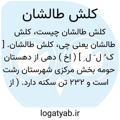 لغت نامه دهخدا کلش طالشان. [ ک ُ ل َ ل ِ ] ( اِخ ) دهی از دهستان حومه بخش مرکزی شهرستان رشت است و 232 تن سکنه دارد. ( از فرهنگ جغرافیایی ایران ج 2 ).