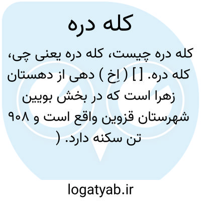 کله دره. [ ] ( اِخ ) دهی از دهستان زهرا است که در بخش بویین شهرستان قزوین واقع است و 908 تن سکنه دارد. ( از فرهنگ جغرافیایی ایران ج 1 ).