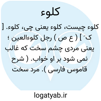 کلوء. [ ک َ ] ( ع ص ) رجل کلوءالعین؛ یعنی مردی چشم سخت که غالب نمی شود بر او خواب. ( شرح قاموس فارسی ). مرد سخت بیدار چشم قوی که خواب بر آن غالب شدن نتواند. ( از منتهی الارب ). مرد بیدار سخت چشم که خواب بر آن چیره شدن نتواند. ( ناظم الاطباء ). رجال کَلوءالعین؛ مرد بیدار چشم و در قاموس گوید: مردی که خواب بر چشم او غلبه نکند. ( از اقرب الموارد ).