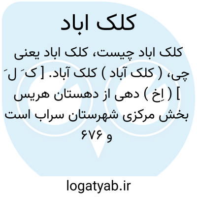 ( کلک آباد ) کلک آباد. [ ک َ ل َ ] ( اِخ ) دهی از دهستان هریس بخش مرکزی شهرستان سراب است و 676 تن سکنه دارد. ( از فرهنگ جغرافیایی ایران ج 4 ).