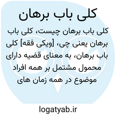 [ویکی فقه] کلی باب برهان، به معنای قضیه دارای محمول مشتمل بر همه افراد موضوع در همه زمان های وجود موضوع و به حمل اوّلی است.