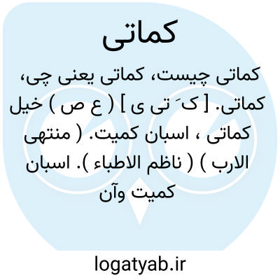 لغت نامه دهخدا کماتی. [ ک َ تی ی ] ( ع ص ) خیل کماتی، اسبان کمیت. ( منتهی الارب ) ( ناظم الاطباء ). اسبان کمیت وآن منسوب است به کَماتَه. ( اقرب الموارد ). ج ِ کمیت کزبیر به معنی اسب نیک سرخ فش و دم سیاه. ( آنندراج ).