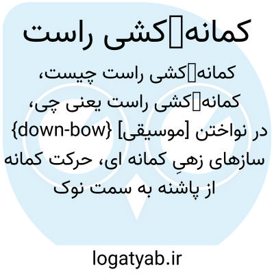 {down-bow} [موسیقی] در نواختن سازهای زهیِ کمانه ای، حرکت کمانه از پاشنه به سمت نوک