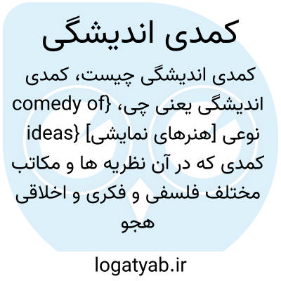 {comedy of ideas} [هنرهای نمایشی] نوعی کمدی که در آن نظریه ها و مکاتب مختلف فلسفی و فکری و اخلاقی هجو می شوند