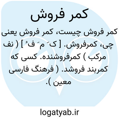 کمرفروش. [ ک َ م َ ف ُ ] ( نف مرکب ) کمرفروشنده. کسی که کمربند فروشد. ( فرهنگ فارسی معین ).
