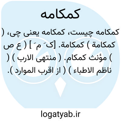 لغت نامه دهخدا ( کمکامة ) کمکامة. [ک َ م َ ] ( ع ص ) مؤنث کمکام. ( منتهی الارب ) ( ناظم الاطباء ) ( از اقرب الموارد ). و رجوع به ماده قبل شود.