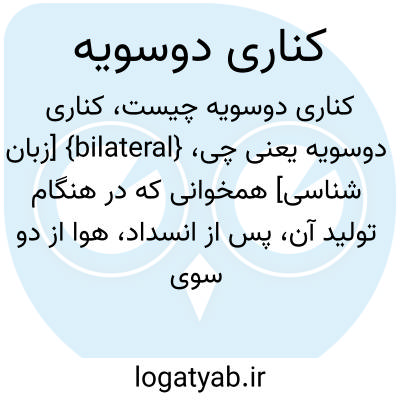 {bilateral} [زبان شناسی] همخوانی که در هنگام تولید آن، پس از انسداد، هوا از دو سوی دهان خارج شود