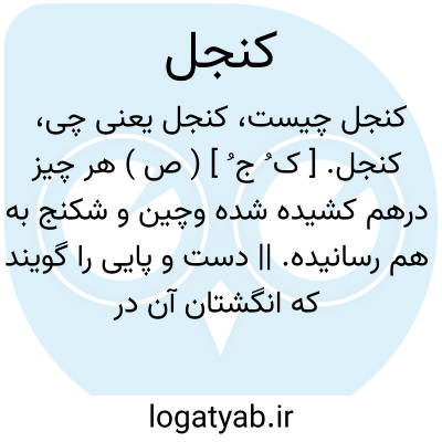 کنجل. [ ک ُ ج ُ ] ( ص ) هر چیز درهم کشیده شده وچین و شکنج به هم رسانیده. || دست و پایی را گویند که انگشتان آن در هم کشیده شده باشد. || خمیر نانی که در تنور افتاده و در میان آتش پخته شده باشد. ( برهان ) ( آنندراج ) ( ناظم الاطباء ).