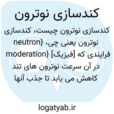 {neutron moderation} [فیزیک] فرایندی که در آن سرعت نوترون های تند کاهش می یابد تا جذب آنها در هسته های شکافت پذیر ممکن شود