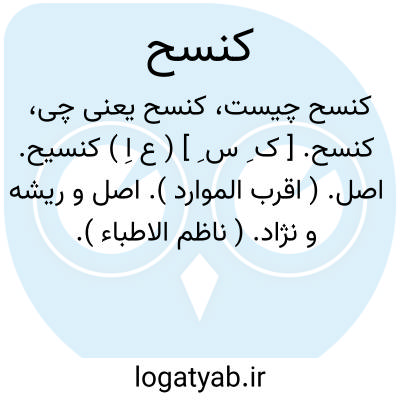 لغت نامه دهخدا کنسح. [ ک ِ س ِ ] ( ع اِ ) کنسیح. اصل. ( اقرب الموارد ). اصل و ریشه و نژاد. ( ناظم الاطباء ).