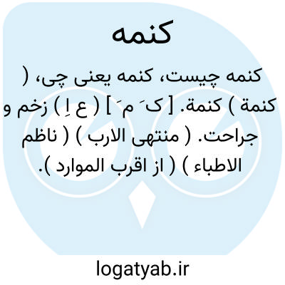 لغت نامه دهخدا ( کنمة ) کنمة. [ ک َ م َ ] ( ع اِ ) زخم و جراحت. ( منتهی الارب ) ( ناظم الاطباء ) ( از اقرب الموارد ).