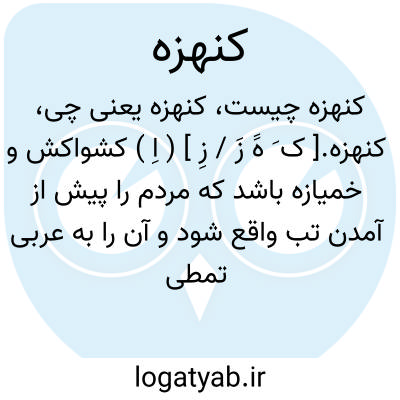 کنهزه.[ ک َ هََ زَ / زِ ] ( اِ ) کشواکش و خمیازه باشد که مردم را پیش از آمدن تب واقع شود و آن را به عربی تمطی گویند. ( برهان ) ( آنندراج ). تمطی و کشواکش، مثل آن حالتی که پیش از آمدن تب پدید آید. ( ناظم الاطباء ).