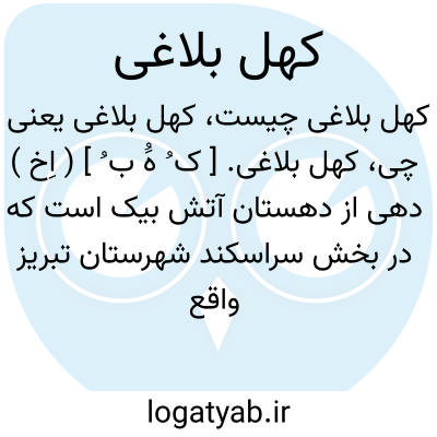 کهل بلاغی. [ ک ُ هَُ ب ُ ] ( اِخ ) دهی از دهستان آتش بیک است که در بخش سراسکند شهرستان تبریز واقع است و 245 تن سکنه دارد. ( از فرهنگ جغرافیایی ایران ج 4 ).