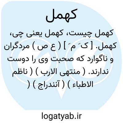 کهمل. [ ک َ م َ ] ( ع ص ) مردگران و ناگوارد که صحبت وی را دوست ندارند. ( منتهی الارب ) ( ناظم الاطباء ) ( آنندراج ) ( از اقرب الموارد ).