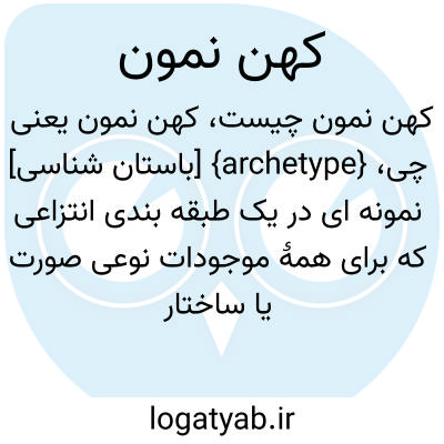 {archetype} [باستان شناسی] نمونه ای در یک طبقه بندی انتزاعی که برای همۀ موجودات نوعی صورت یا ساختار آرمانی در نظر می گیرد که مصادیق موجود آن، نمونه های دگرگون شدۀ صورت آغازین است