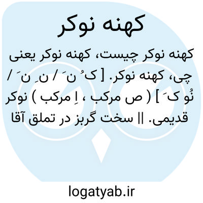 کهنه نوکر. [ ک ُ ن َ / ن ِ ن َ / نُو ک َ ] ( ص مرکب، اِ مرکب ) نوکر قدیمی. || سخت گربز در تملق آقا ودزدی از مال او. ( از یادداشت به خط مرحوم دهخدا ).