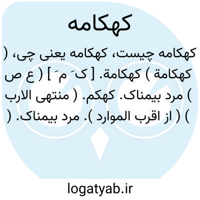 لغت نامه دهخدا ( کهکامة ) کهکامة. [ ک َ م َ ] ( ع ص ) مرد بیمناک. کهکم. ( منتهی الارب ) ( از اقرب الموارد ). مرد بیمناک. ( آنندراج ) ( ناظم الاطباء ). || پیر سالخورده. ( از منتهی الارب ) ( ناظم الاطباء ). رجوع به کهکم شود. || ( اِ ) بادنجان. ( از منتهی الارب ) ( ناظم الاطباء ). رجوع به کهکم شود.