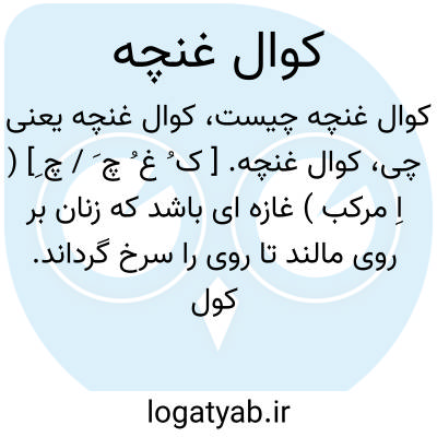 کوال غنچه. [ ک ُ غ ُ چ َ / چ ِ] ( اِ مرکب ) غازه ای باشد که زنان بر روی مالند تا روی را سرخ گرداند. کول غنچه. ( برهان ) ( ناظم الاطباء ) ( آنندراج ). گلگونه. گول غنچه. گل غنچه. ( برهان ). سرخاب. و رجوع به کول غنچه و گول غنچه و گل غنچه شود.