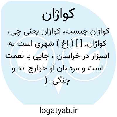 کواژان. [ ] ( اِخ ) شهری است به اسبزار در خراسان، جایی با نعمت است و مردمان او خوارج اند و جنگی. ( حدود العالم چ دانشگاه ص 92 ).