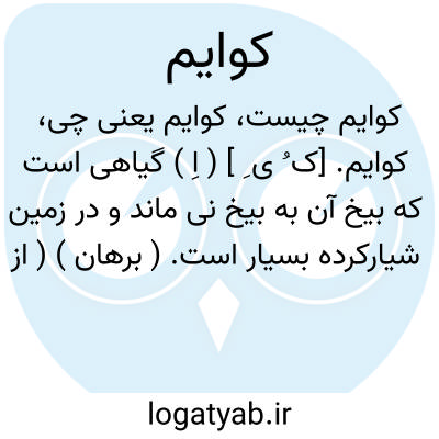 کوایم. [ک ُ ی ِ ] ( اِ ) گیاهی است که بیخ آن به بیخ نی ماند و در زمین شیارکرده بسیار است. ( برهان ) ( از آنندراج ). گیاهی. ( ناظم الاطباء ).