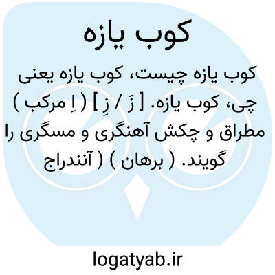 کوب یازه. [ زَ / زِ ] ( اِ مرکب ) مطراق و چکش آهنگری و مسگری را گویند. ( برهان ) ( آنندراج ). مطرقه و چکش آهنگری و مسگری. ( ناظم الاطباء ). || میخکوب را نیز گفته اند. ( برهان ) ( آنندراج ). || توخماق. ( ناظم الاطباء ).